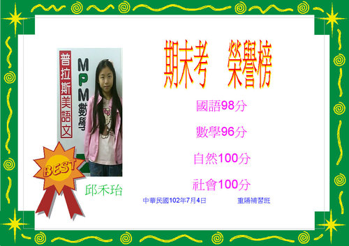 101年下學期期末考榮譽榜--高年級