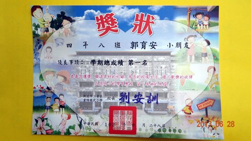賀!重陽補習班郭育安同學參加101學年度公私立國民小學閱讀寫作競賽榮獲區級特優 , 市級佳作