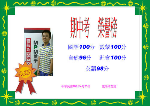 101年下學期期中考榮譽榜--高年級